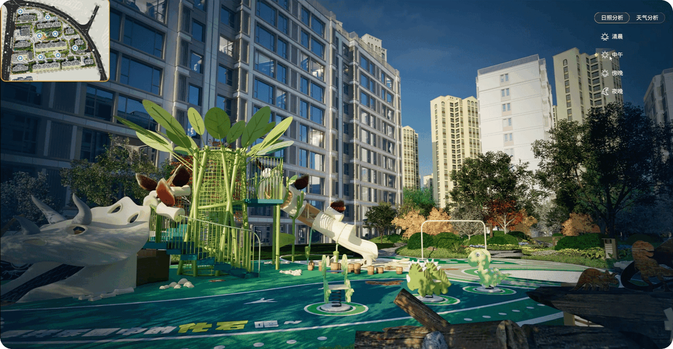 · 动态环境:24小时光影+天气模拟,实时感知、体验