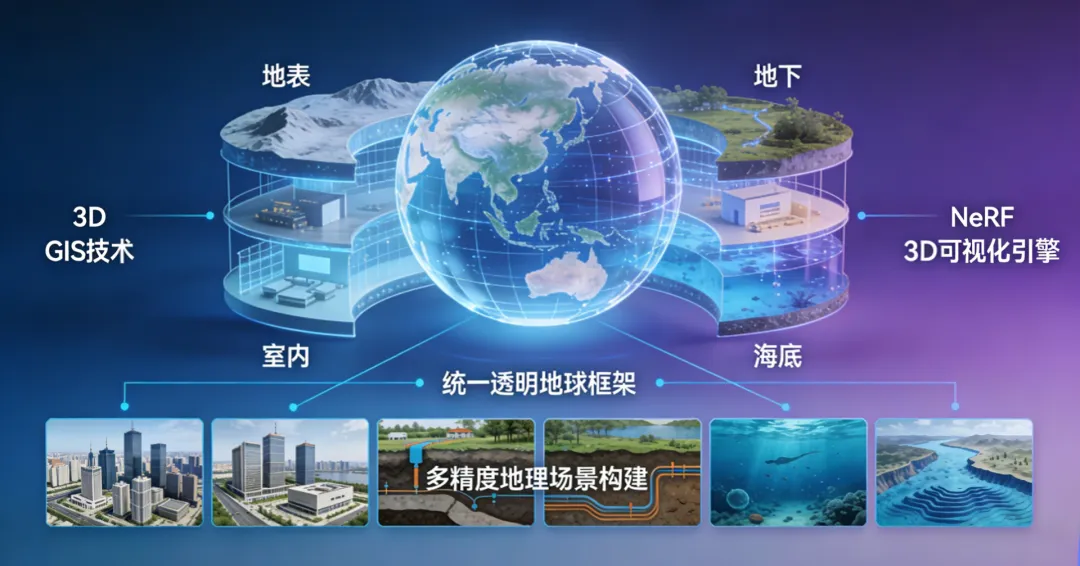 GreatMap GIS引入3D GIS、NeRF 3D可视化引擎等技术,构建统一透明地球框架,实现了:从地表到地下、从室外到室内、从海面到海底的全空间一体化表达;多精度地理应用场景的灵活构建,真实、科学地对现实世界建模。