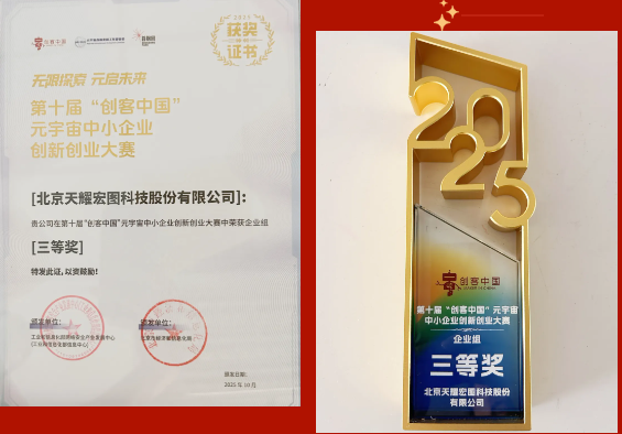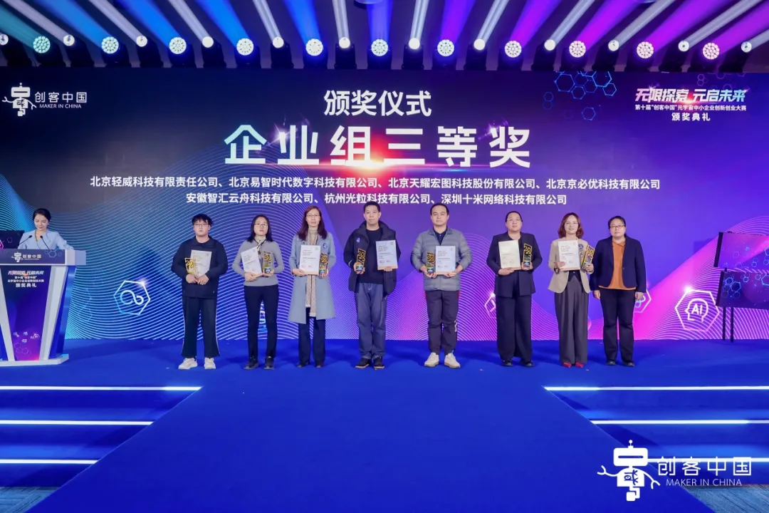 日前,由工业和信息化部网络安全产业发展中心、北京市经济和信息化局、北京市石景山区人民政府、首钢集团有限公司联合主办的第十届“创客中国”元宇宙中小企业创新创业大赛颁奖典礼在北京首钢园隆重举行。这是国内聚焦元宇宙领域的标杆性国家级赛事,天耀宏图凭借在地理信息元宇宙领域的突破性技术与场景化落地能力,从全国参赛项目中脱颖而出,成功斩获本次大赛企业组三等奖。