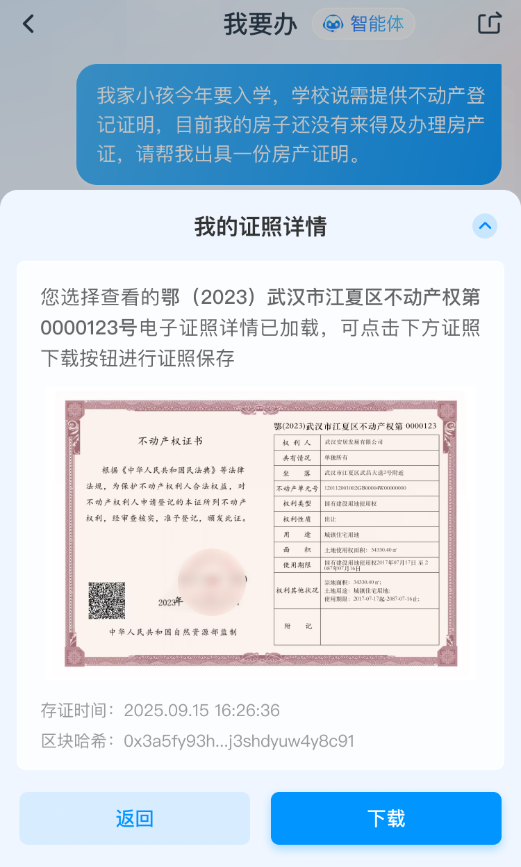 借助智能导办、材料自检、链上核验等功能,系统实现登记流程和办理时限的极限压缩,让办理“一键透明”、材料“一次备齐”、群众“一次不跑”。