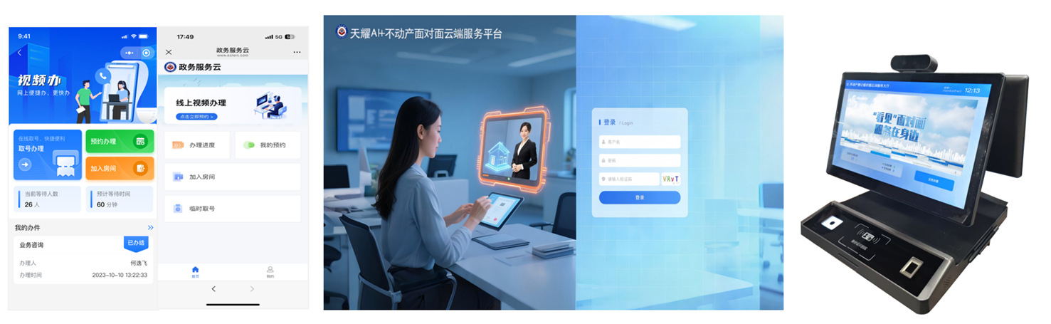 受理环节是不动产转移登记的关键起始环节,企业在办理业务时可在智能引导下一站式完成材料提交。系统自动提取身份证、营业执照、购房合同等关键信息,并通过与税务等部门的数据共享,核验材料真实性、一致性,实现受理环节自动化。若遇到复杂情况或个性化问题,用户可一键发起视频连线,通过天耀宏图 “视频办”(不动产面对面云端服务平台)直达人工坐席,享受 “面对面” 专业指导,真正做到沟通无障碍、办事不绕弯。