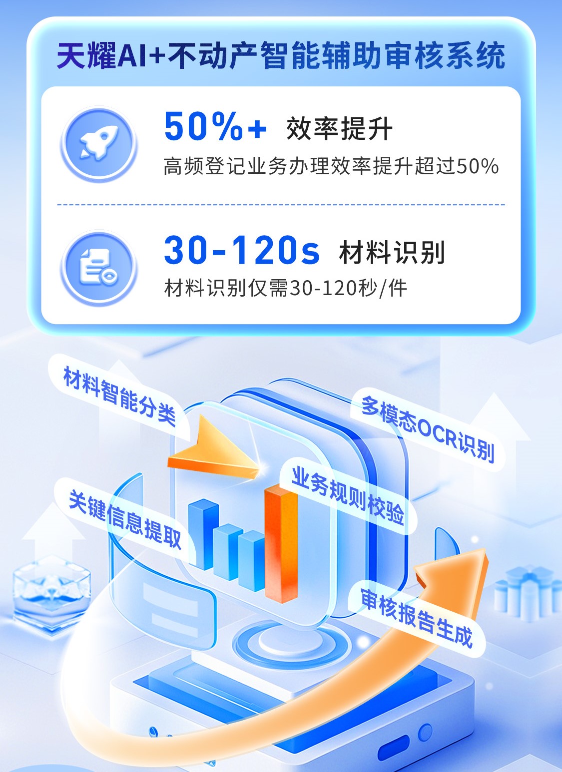 在“人工智能+”战略与“高效办成一件事”政务服务改革的双重推动下,不动产登记领域正迎来智能化转型的关键时期。面对传统审核模式中效率不高、易有疏漏等现实问题,天耀宏图推出AI+不动产智能辅助审核系统,以智能化手段重塑登记流程,助力政务服务提质增效。